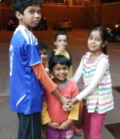 Two children stand facing each other holding hands and arms raised forming a bridge. The players pass under the bridge while singing the Posham Pa song. On the last line, bridge-makers put down their arms, “imprisoning” whoever is under the bridge. Once a child is caught, he/she must go behind one of the bridge-makers and hold unto his/her back. This is repeated until half of the children are behind the bridge-maker while the other half of children are behind the other bridge-maker. Then, with the bridge-maker still holding hands, the children behind each of them try to pull them apart.