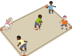King’s Corner is played with five children in  a schoolyard. One large square is drawn in chalk on the ground. Four children stand on one of the corners of the square. The fifth player is “It”. “It” stands in the middle of the square. The four corner players attempt to trade places without being tagged by the fifth player, or without vacating a corner long enough for “It” to stand in the vacant corner. If a corner player is tagged or stranded without a free corner to stand in, he/she becomes the new “It”. Common strategy is to try to swap corners while the player who is “it” is chasing other players who are trying to swap corners.