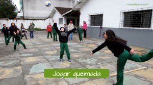 Queimada is Portuguese for “burned”. This game is similar to dodge ball and is best played in a field where there is lots of room.The children divide into two teams. A cemetery is designated for each team on the ends of the field. One player from each team stays inside the cemetery. The game begins when a players in one cemetery throw a ball to the other side of the field. Players from the other team must catch the ball then throw it at one of the opposing players. If a ball hits a player, the player is is “dead”. She must go to the cemetery. The game finishes when all of the players on one side are “dead.”
