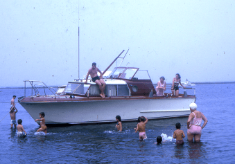 Back in the day, my dad and Uncle Phil co-owned the Cho-Go, a wooden Owens motorboat. Our summers were filled with day trips to and from the beaches of the Great South Bay.  Each year our families grew. My mom described passing small children from the boat to the beach shore akin to the circus clown cars—it seemed like an endless stream of kids.