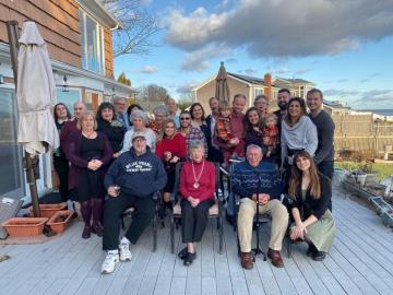 Variations do sneak in. If favored, they are repeated until they become a staple on the holiday menu. This year my niece and nephew-in-law, Eileen and Dan, smoked a duck and served it in bourbon sauce. That needs to come back again. Matt, with his new knee, worked the barbecue tending to the turkey for four hours. Yes, it was absolutely delicious. He also added his little peppers stuffed with prosciutto and provolone cheese to the antipasto. I brought a ginger orange cranberry sauce and the gravlax—salmon with dill and mustard glaze for the non-meat eaters. My sister-in-law, Carla, whipped up red cabbage and deviled eggs. She was requested to repeat it for the next holiday. A vegan stuffing and my daughter, Sara’s kabocha squash stuffed with a dairy-free, gluten-free, vegetarian rice mix, were a hit. There were pies, birthday cake, and espresso laced with anisette for dessert. Eileen wowed everyone with her Kaching Bars (OMG). We Face Timed with my daughter, Robyn, and sister, Barbara, and lingered around the table for hours.