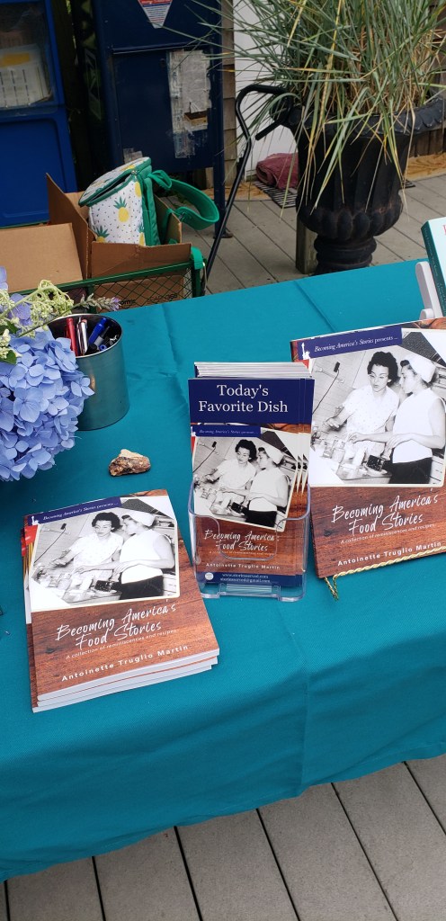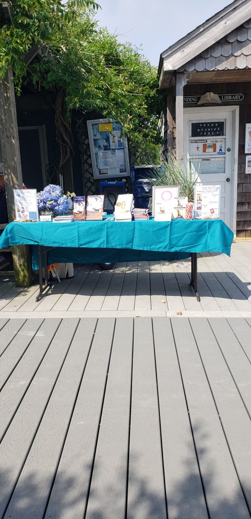 If we were having coffee together, I would tell you I took my great news to my book signing event on Saturday at Davis Park Fire Island. Matt and I rode the ferry across the Great South Bay and set up tables, books, giveaways, and sign up lists next to the Post Office. Beach daytrippers and residents passed by, browsed, and some bought books, which I happily signed for them. Matt took care of the transactions (thank God!) while I chatted with old friends and met new people throughout the day. Great day. Special thanks go out to Linda Firpo, Postmistress Extraordinaire, and Sweet Saily, who were so gracious in letting me set up shop.
