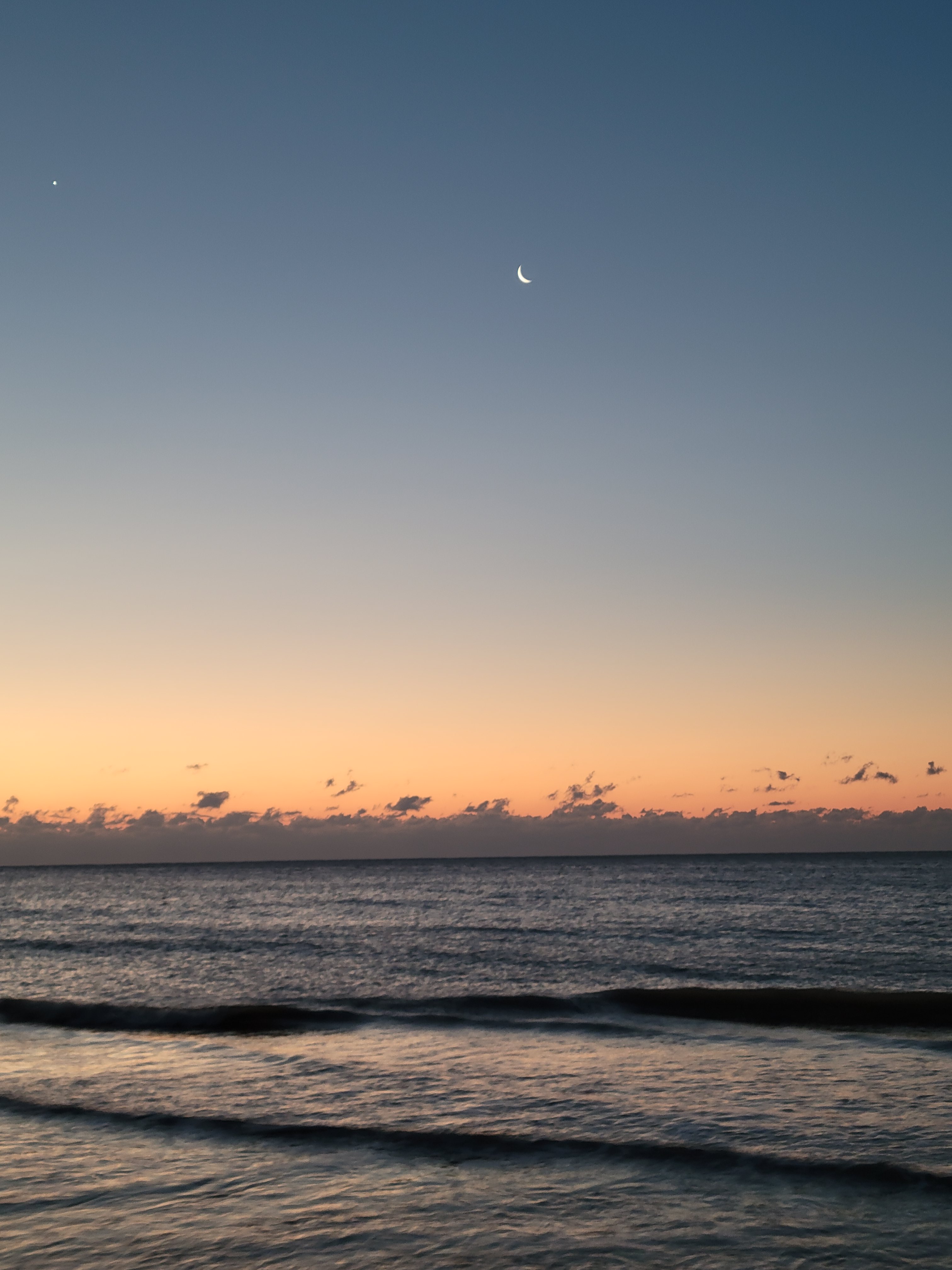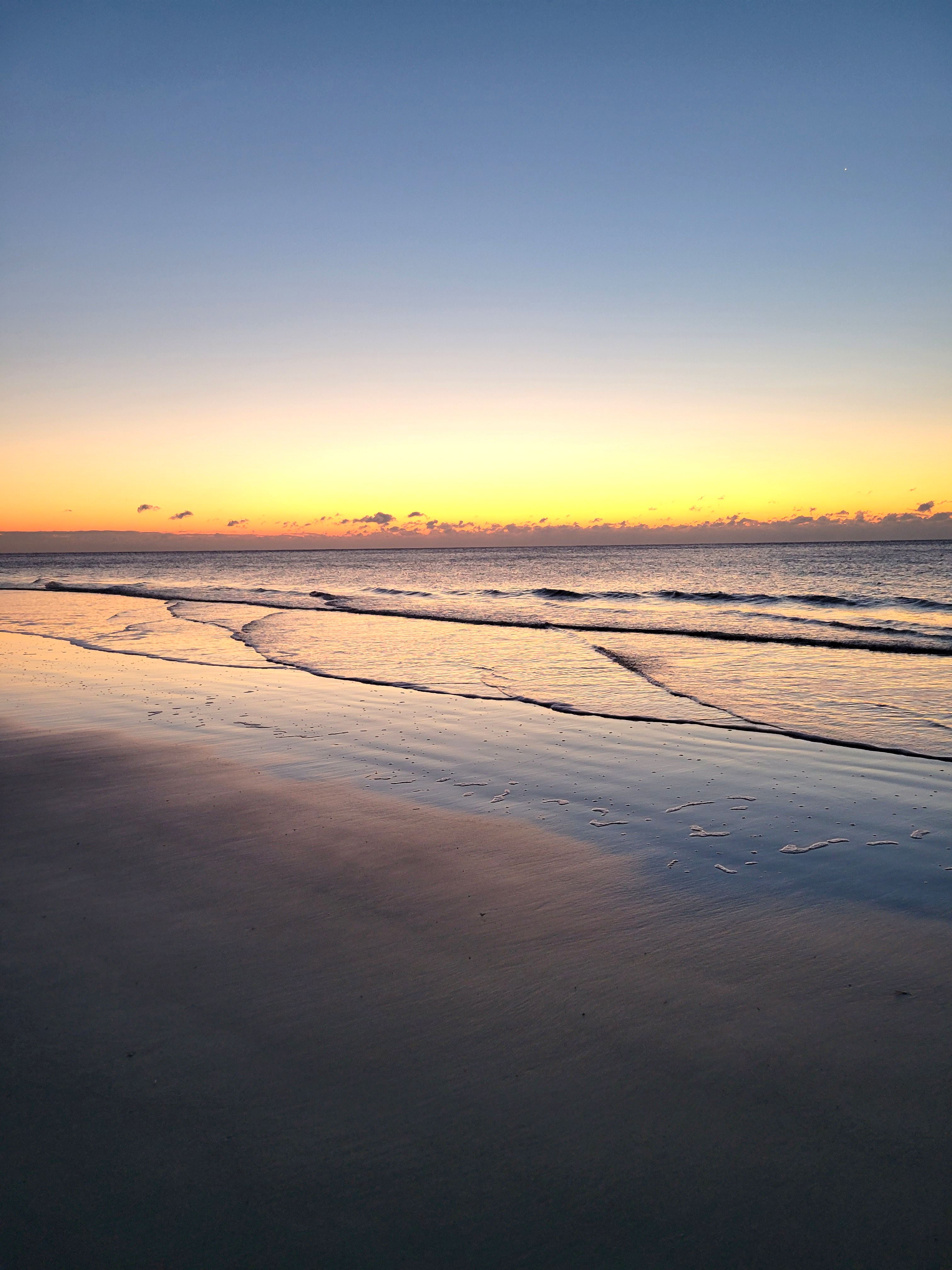 I walked onto a deserted beach—not a fellow walker, sunrise worshiper, or bird in sight. The wind blew at a gale force and the sun barely stained the horizon. I checked the app. Crum!! It was set on Tortola BVI time! Of course it is a gorgeous 75° with calm winds and clear skies to backdrop an incredible sunrise. In the end, I took a few pictures of the crack of almost dawn on a freezing cold beach. Enjoy.