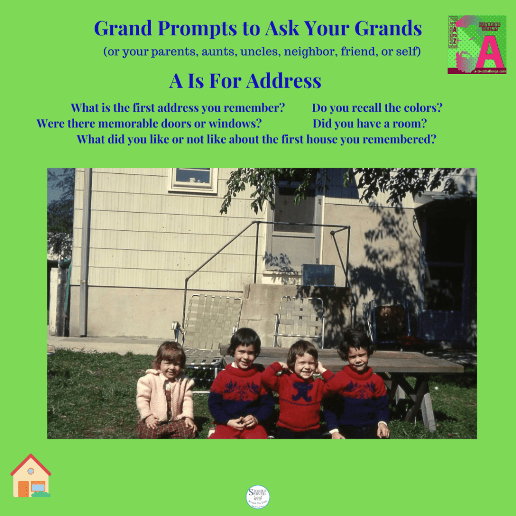 So cool to be reminded to ask Grands about things. Mine are gone, and I wish so many times that I had asked and written more things down to remember. First house was small, cement block home in Florida. I remember picking up seagrape leaves as big as paper plates every weekend all year round, but it was worth it to have the tree in that flat, closed in neighborhood. When I climbed to the top I could see a whole mile away! Enjoy A to Z!