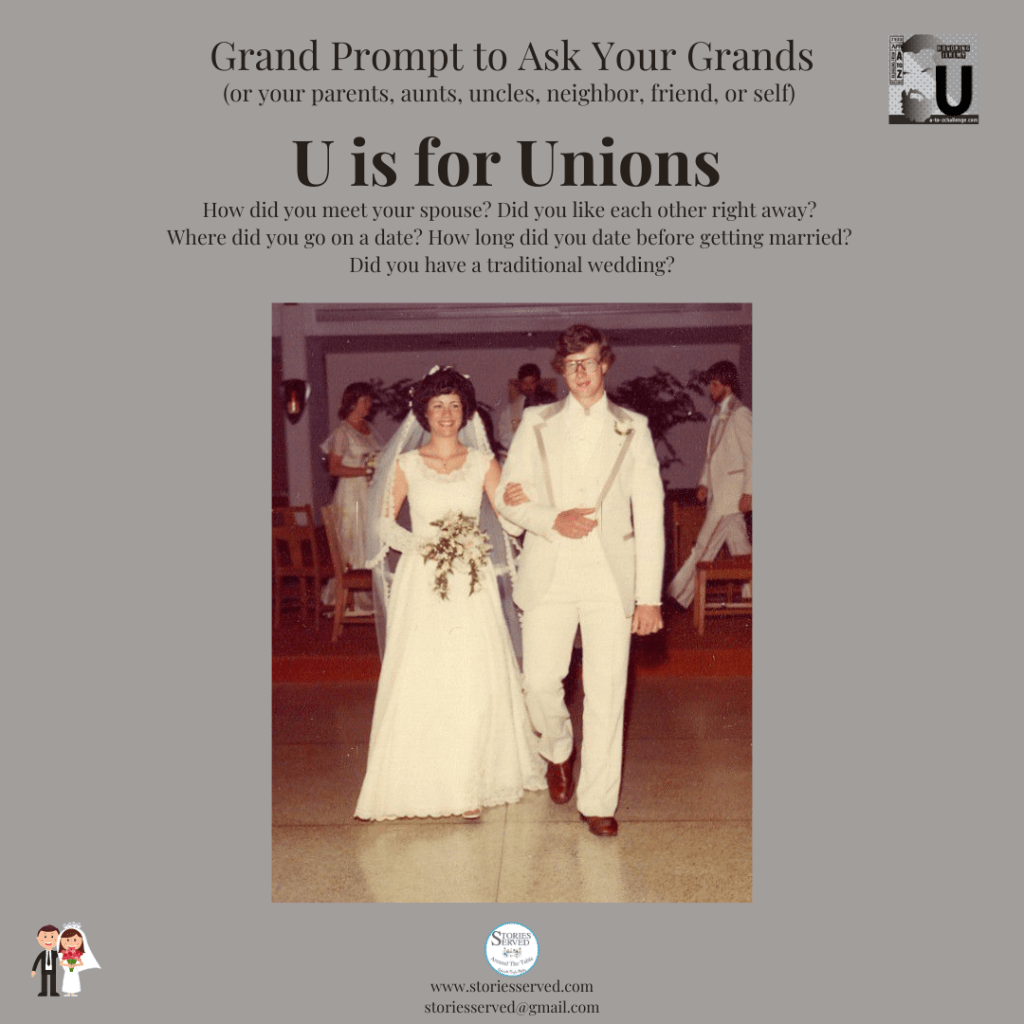 My theme for the 2022 AtoZ Blog Challenge is titled Grand Prompts To Ask Your Grands. Each day in April I will present a conversation starter/journal prompt to ask your parents, grandparents, aunts, older neighbors, co-workers, yourself…you get the idea. The questions are meant to forge connections between and within generations and inspire storytelling and journaling.