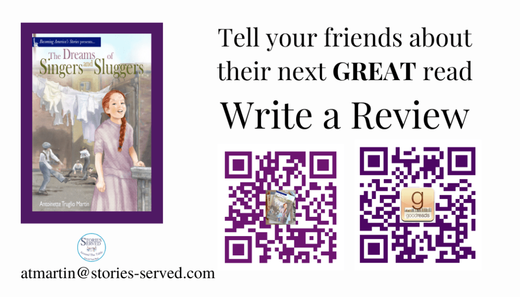 The Dreams of Singers and Sluggers picks up where The Heart of Bakers and Artists left off.Lily has big dreams to sing out with her powerful voice, but must do EVERYTHING, since Mama fell into a deep depression, the baby is sick, and the “Black Hand” terrorizes the neighborhood, threatening her chance to sing at the New York Highlanders Fourth of July baseball game.