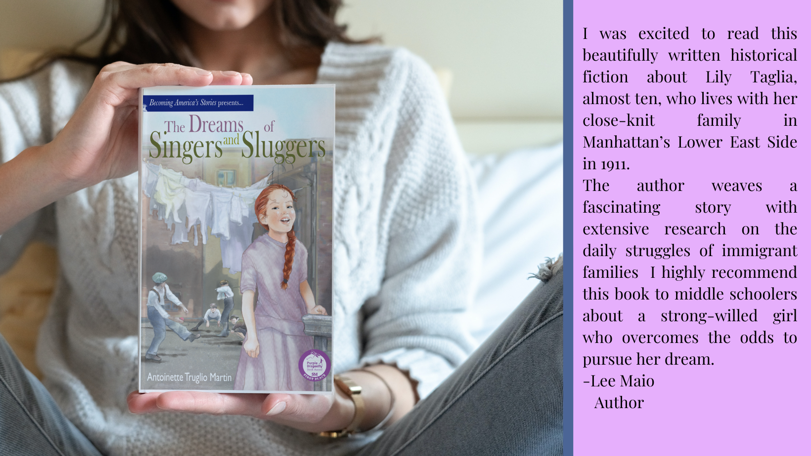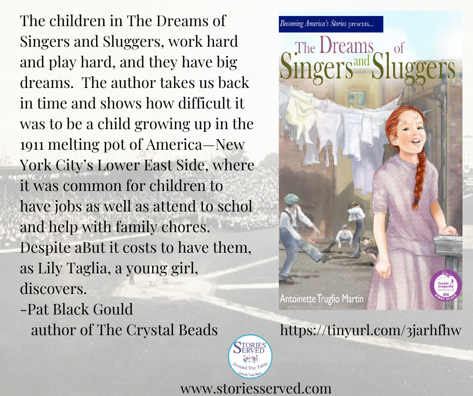 It was amazing! I recently finished reading The Heart of Bakers and Artists and continued to wonder about the characters long after I had turned the final page. The Dreams of Singers and Sluggers was the perfect solution. It continued the story of 9 (almost 10) year old Lily and her Sicilian immigrant family living in New York’s lower east side. Partly based on the author’s family stories that she absorbed around their kitchen table, the sights, sounds, fears, struggles, joys and community of new Americans in the early 1900s were made breathtakingly real.