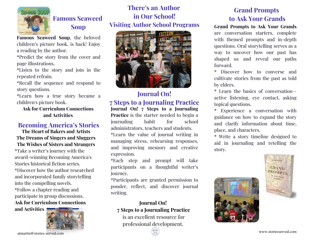 Get to know Antoinette Truglio Martin, the author of Famous Seaweed Soup, the beloved children’s picture book. Learn how an almost true story became a book. Curriculum connections activities and worksheets are available.
